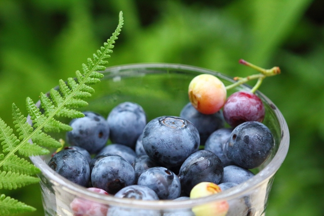 完熟したブルーベリーをその場で味わい、